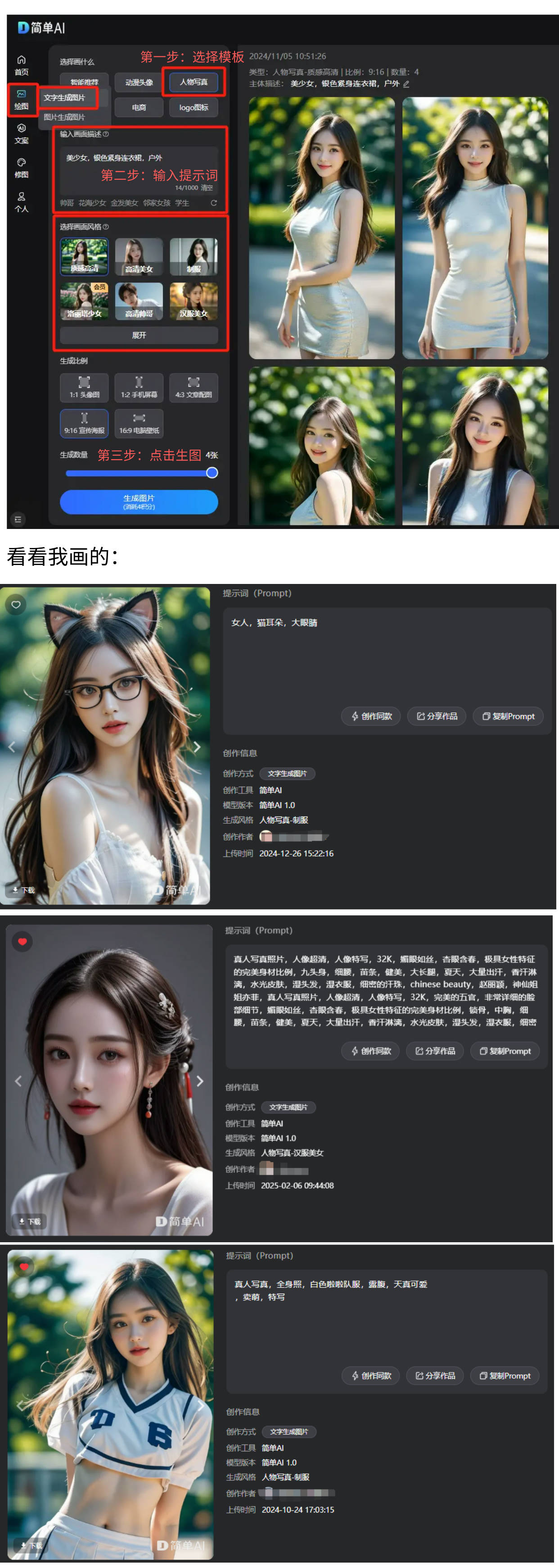 打开就能用,网坐供给生成自配图、创意海报、种草笔记、爆款题目、勾当方案、AI商品图及AI证件照等多项AI创做功能,环节是操做简单,好比:美少女,栏选择“AI图片创意”,让你随时随地制做出令人冷艳的做品。比逛戏更诱人的创制之旅,努力于让每一个用户都能便利地利用和理解人工智能,仍是想要打制吸引眼球的社交账号头像,前TVB小花余思霆正在社交平台上颁布发表离巢,这种不测欣喜的感受实是太好了,想停都停不下来!是个小彩蛋,它不只生成结果细腻、实正在感十脚,第一步:点击 简单AI ,选择“文字生成图片-人物写实”